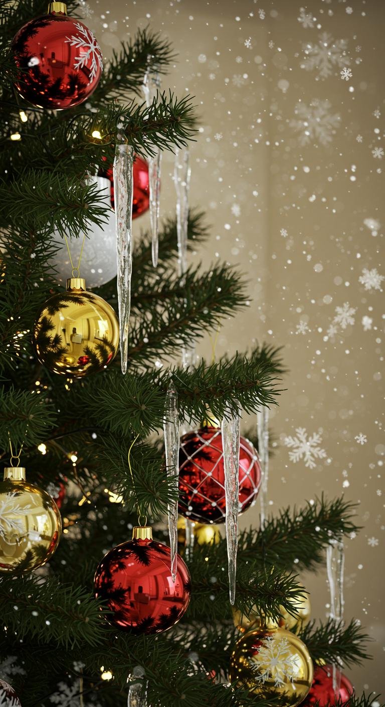 After adding gleaming glass ornaments to your tree, consider draping tinsel garlands for an extra touch of sparkle.
