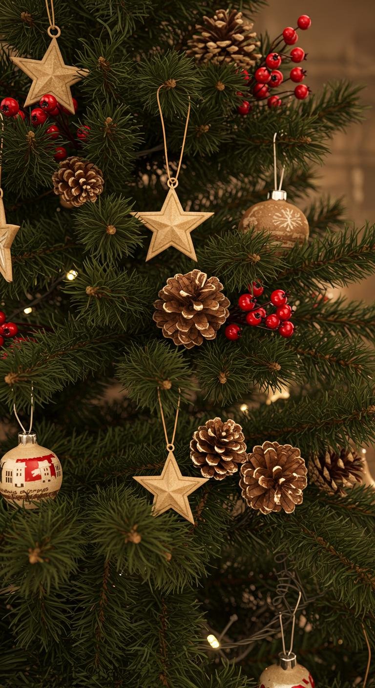 Combining shiny metals like gold and brass with natural elements instantly ups your tree’s style game. Imagine vintage metal ornaments paired with fresh pine sprigs or sprigs of holly—there’s this wonderful contrast between the glimmer and the green that makes everything feel more inviting. If you’re feeling adventurous, gather some pinecones or berries from around your neighborhood (just make sure it’s okay to do so!) and tuck them among the branches for that authentic rustic touch.