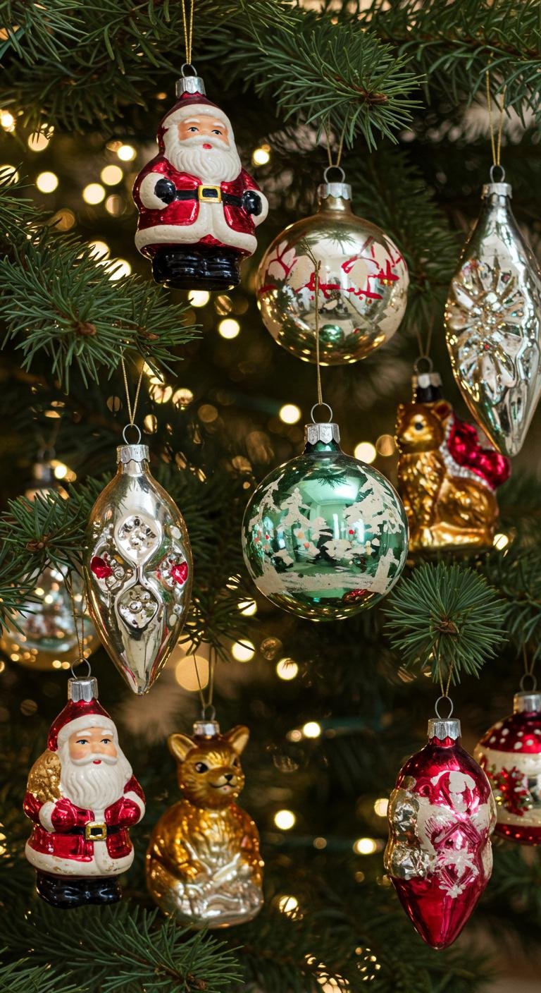 Vintage ornaments are pure magic when it comes to decking your tree with nostalgic charm. Think hand-painted glass baubles, glimmery icicles, or cute little figurines that look like they’ve got stories to tell. Hit up thrift stores or rummage through your attic — you never know what treasures you’ll find! Feeling crafty? You can also DIY ones by filling clear glass ornaments with faux snow and tiny figurines. Adding miniature animals or handmade pieces makes your tree totally personal and full of heart.