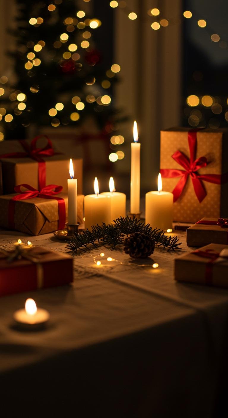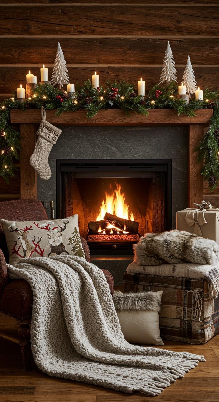 Warm lighting is the secret sauce for cozy holiday vibes. Candles (real or LED) on the dining table or mingled in your village display sprinkle magic all around. String lights woven through garlands or hanging on walls create that enchanting twinkle we all crave. On a budget? Mason jars filled with battery-operated fairy lights make the perfect DIY lanterns to cozy up any corner.