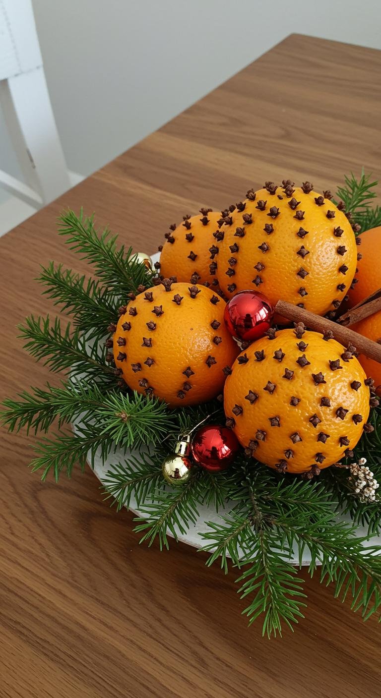 Scented decor like pomanders—those clove-studded oranges—are an easy way to add both beauty and warm, inviting fragrance. Making them is a breeze: just press whole cloves into an orange’s skin and pop them in bowls or hang them as ornaments. They’re budget-friendly and bring such a cozy, nostalgic vibe you’ll want to make a dozen!