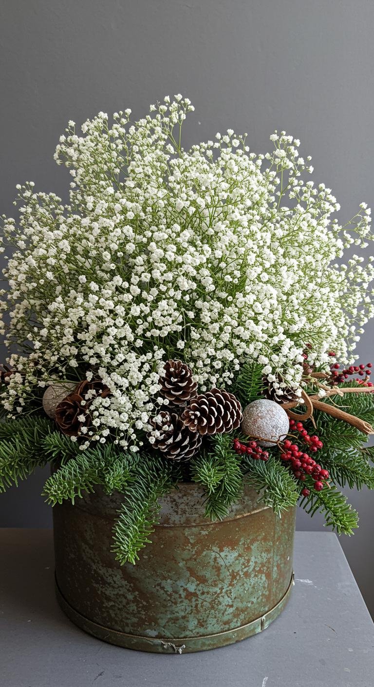 Adding fresh flowers like baby’s breath or other seasonal blooms livens up your vintage decorations beautifully. Simple glass vases around your home or small bunches tucked into wreaths make the space feel lively and natural. Gathering wildflowers nearby is a budget-friendly way to make your arrangements feel fresh, personal, and festive.