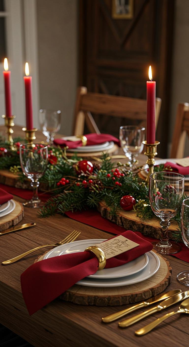 You can’t go wrong with the classic reds and greens, but mixing it up with some muted sage greens, jewel tones, or vibrant golds adds a fresh spin on tradition. I love how these subtle changes keep the vibe cozy but interesting. To keep it budget-friendly, look for thrifted tablecloths or ribbons in these shades and mix vintage finds with newer pieces. It’s all about balance and layering to get that perfect, lived-in look.