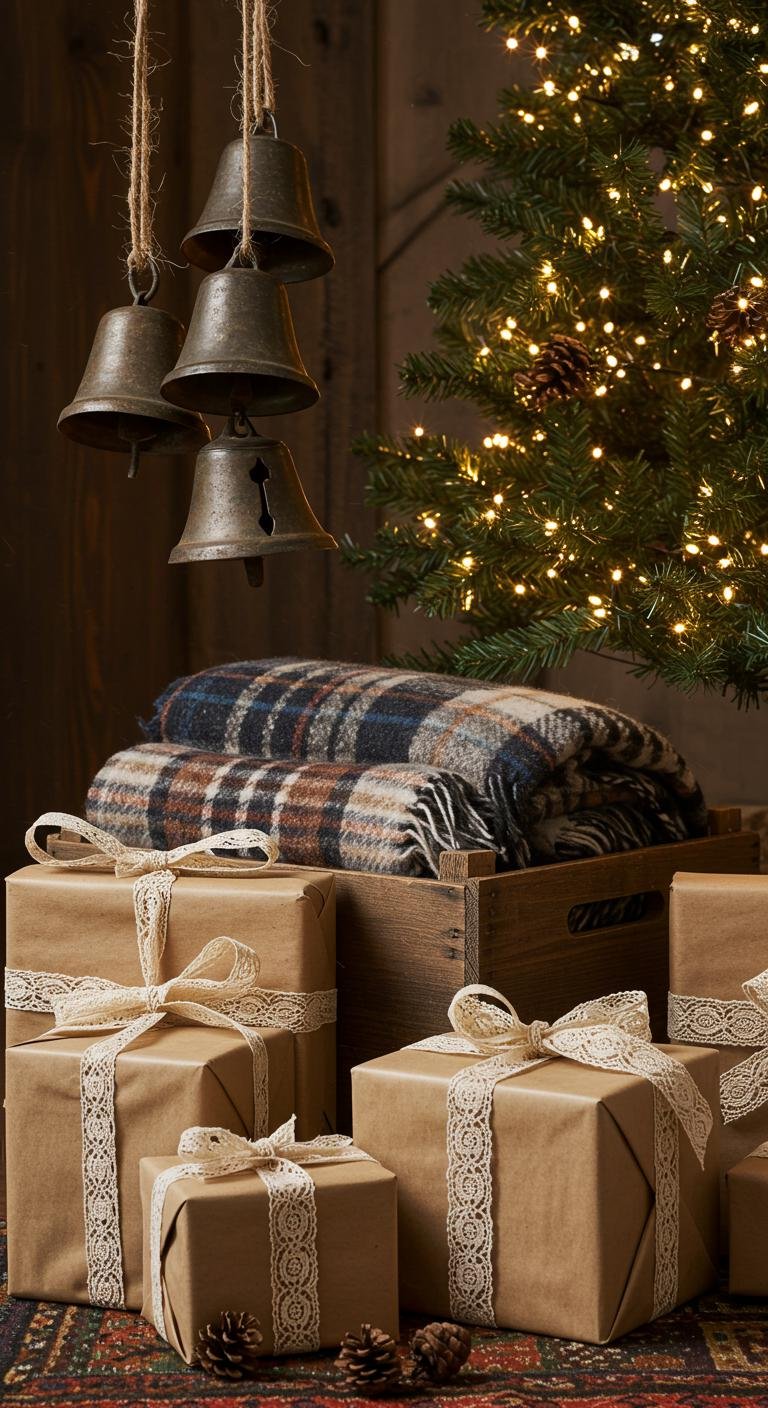 Burlap, wood, and metal are all about that cozy, rugged charm. Picture burlap table runners that look perfect paired with old wooden crates doubling as seasonal storage or display. Antique tin signs and vintage bells add just the right nostalgic touch. If you’re up for it, crafting with reclaimed wood is so satisfying — cut it, paint it with festive scenes, and suddenly you’ve got unique decorations that cost almost nothing.