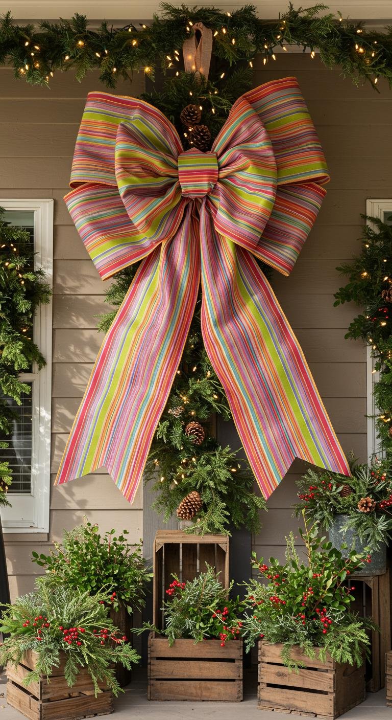 Nothing says festive quite like those oversized striped bows! They’re such a playful way to jazz up trees, garlands, or even your front door. Grab some wired ribbon in your favorite holiday colors, cut it into loops, stack them, and secure with wire. Then, just fluff ’em out and attach wherever you want to bring that bold pop of cheer. Easy to make, affordable, and instantly joyful—your guests will definitely notice these fun flair pieces.