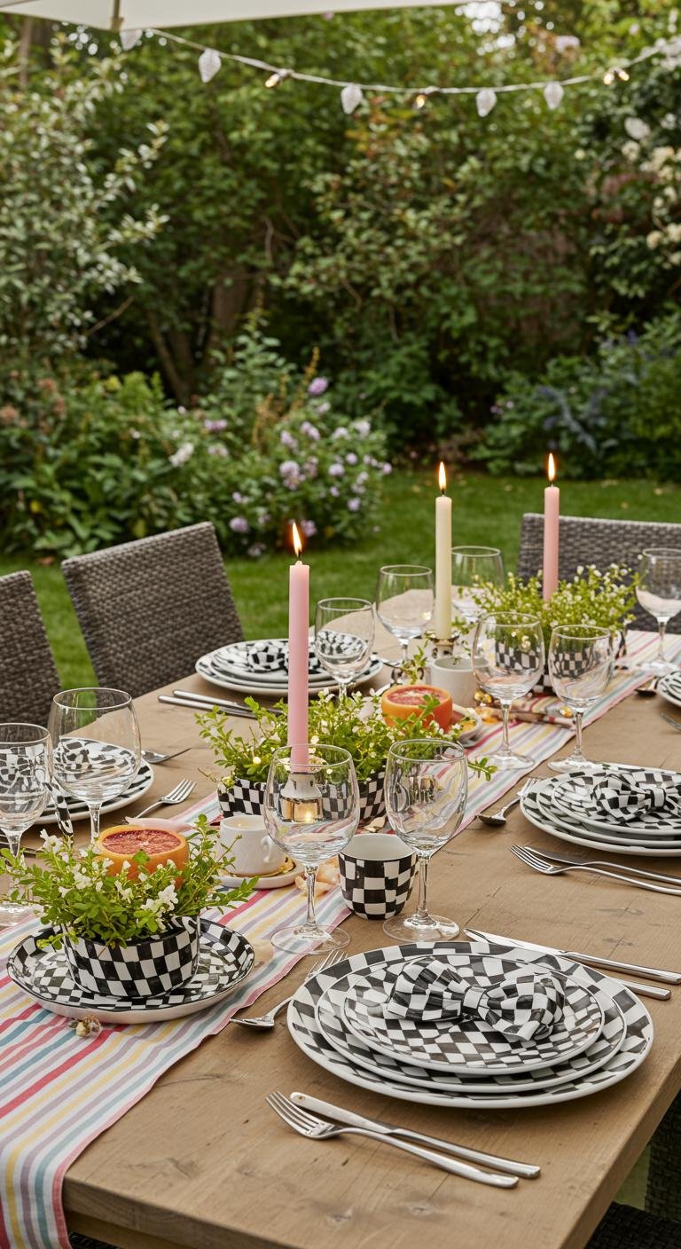 Add a cheeky pop to your outdoor dining setup with monochrome bow-themed plates, napkins, and glassware. If you’re into DIY, you can totally personalize plain pieces with fabric paint or make your own napkins. Bright colors and playful bows instantly liven any gathering, making holiday meals feel extra special without emptying your wallet.
