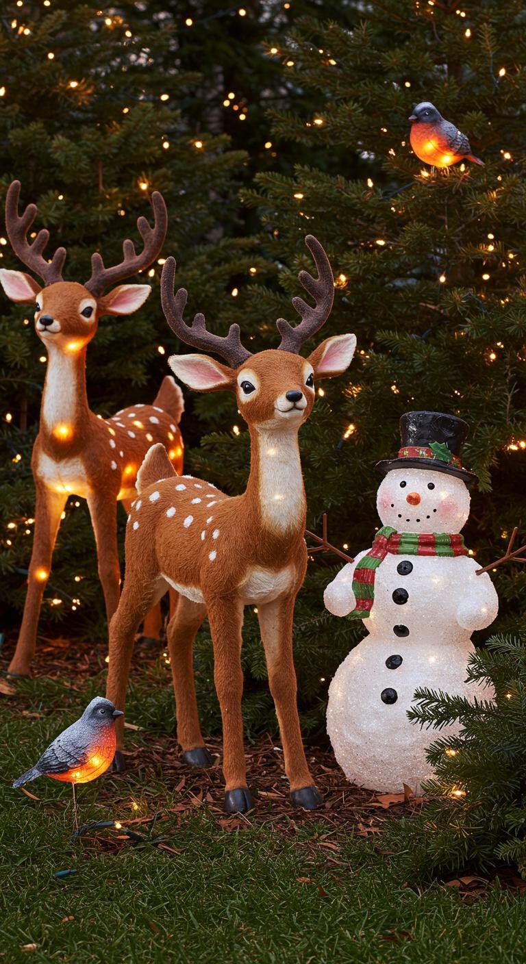 Why not sprinkle in a little whimsy with animal figurines? Think snowmen, reindeer, or quirky birds perched around your yard. You can buy them or get crafty with clay, painted wood, or even upcycled materials like old toys and plastic bottles. Placing these characters among your greens adds an interactive, joyful vibe that kids and adults will love discovering.