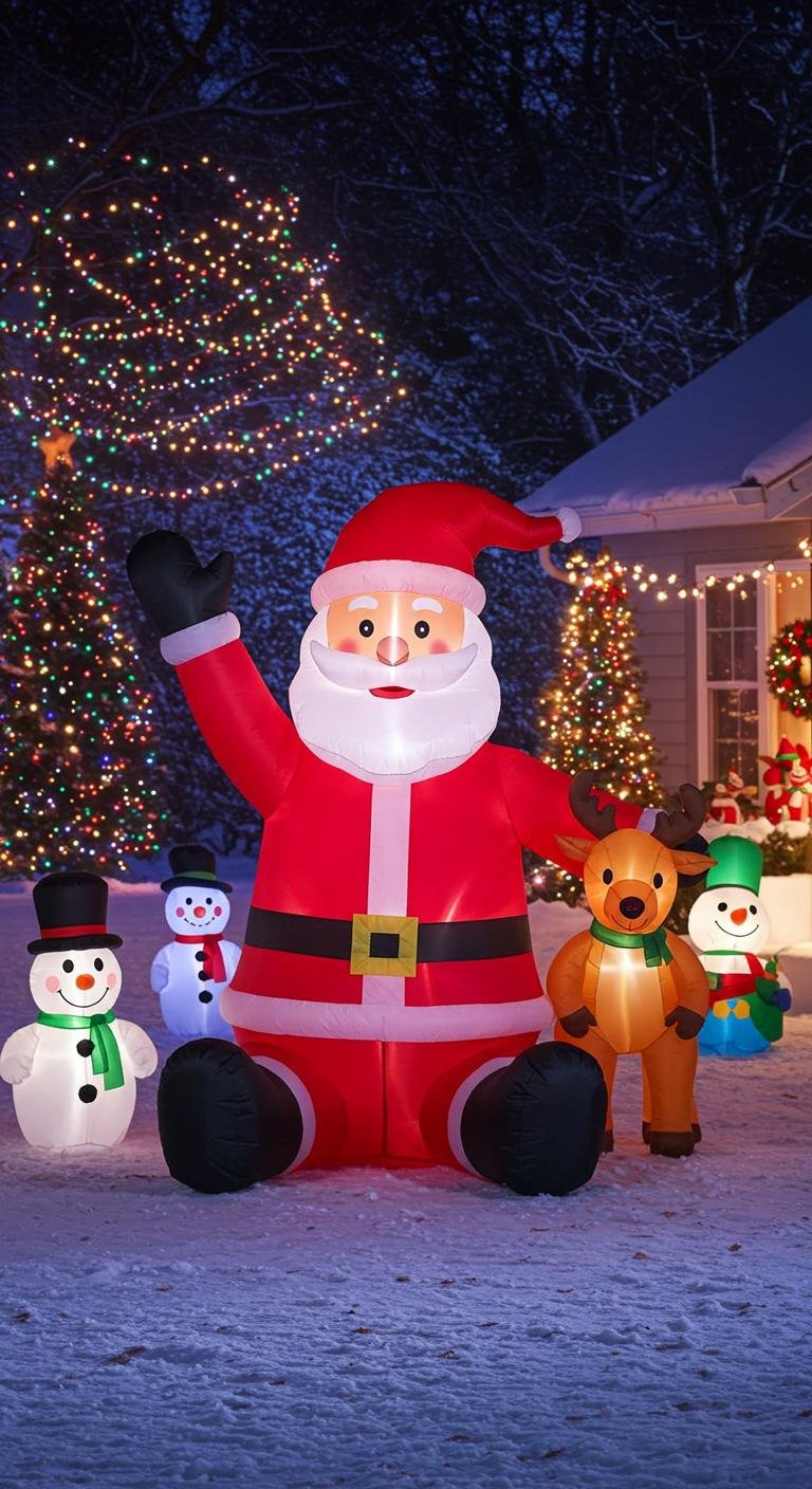 If you love eye-catching and quick setups, you’ve got to try large holiday inflatables. From Santa to snowmen to fun animals, these come in all sorts of playful themes. They’re typically super easy to put up in minutes and often available cheaply post-holiday or online. Toss one or two in your yard and watch your space become a kid-friendly festive wonderland.