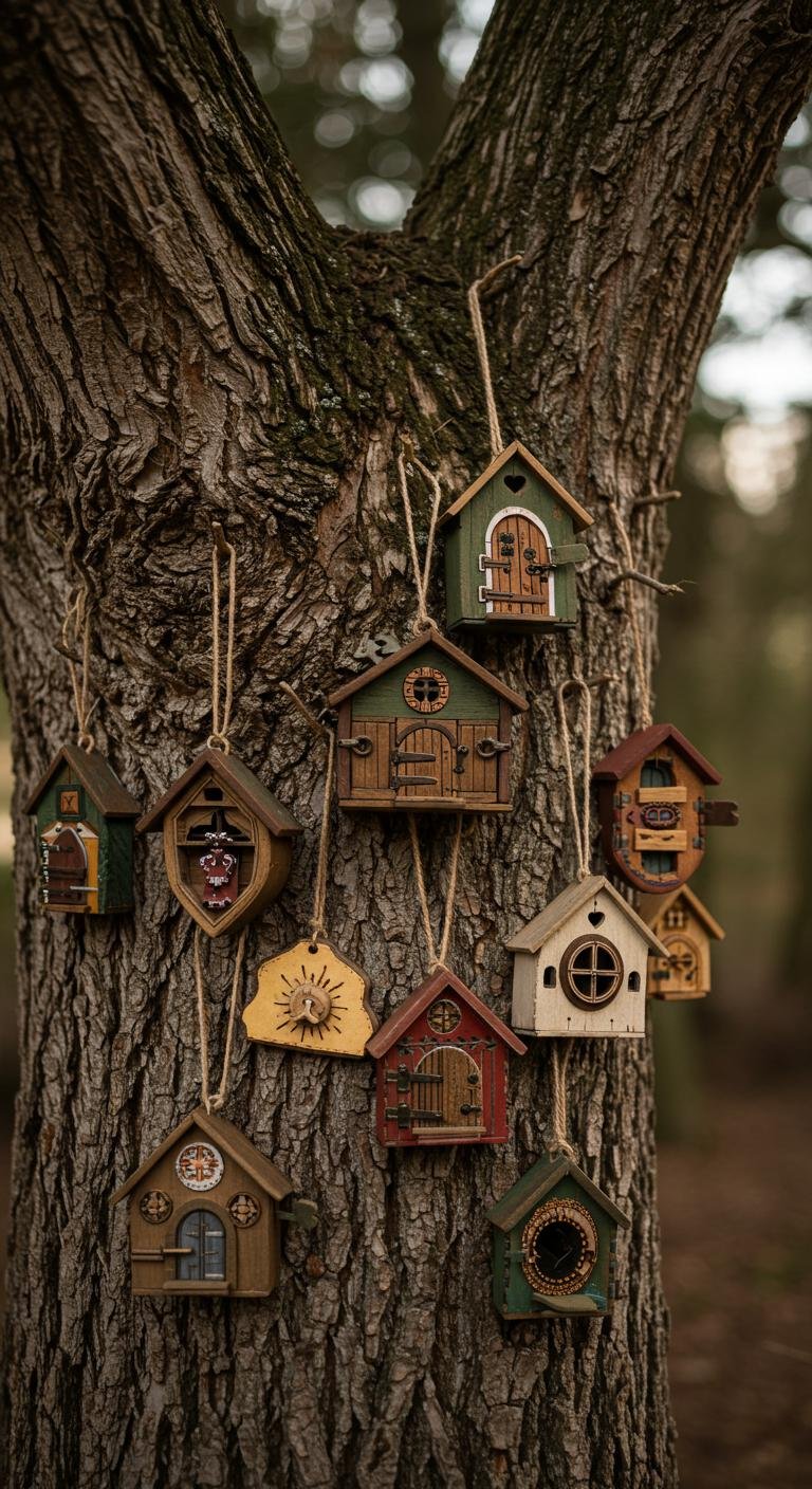 Miniature vintage-inspired houses and figurines can become the cutest accents on your tree. Think tiny winter homes, characters from stories you love, or woodland animals. Instead of going totally traditional, use these pieces to add personality and whimsy that make your tree feel like a storybook come alive. Position them where they’ll peek out from branches, and pair with soft white lights to mimic the peaceful glow of a snowy village. You can find these gems at thrift shops or craft fairs, making it an affordable way to up your decor game.