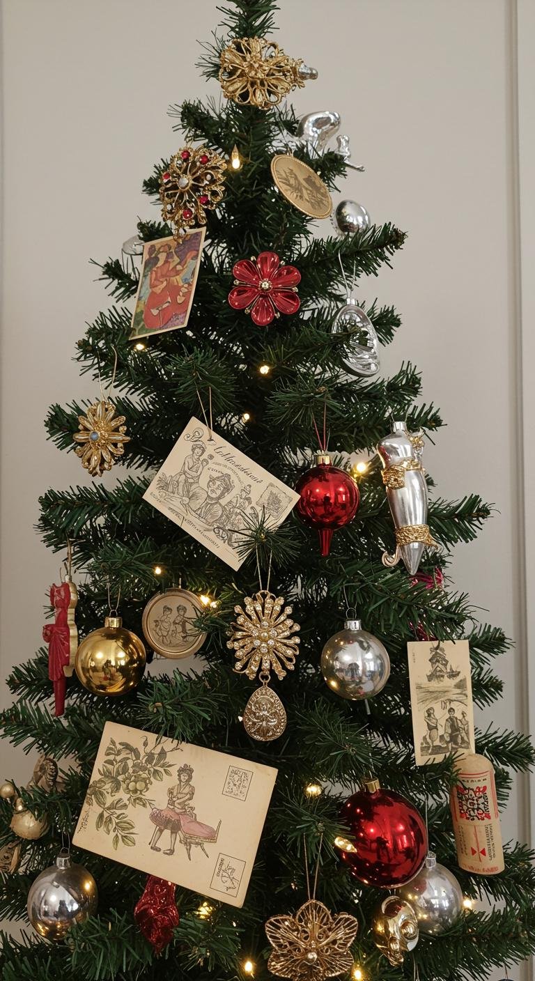 Estate sales and flea markets are gold mines for vintage bits that can add real personality to your tree. Old postcards, buttons, and jewelry make quirky ornaments bursting with stories. Pin brooches on your branches or hang postcards as tiny backdrops to make your tree truly one-of-a-kind. These pieces aren’t just decor—they’re memories you’re celebrating. Plus, mixing in modern accents keeps things fresh and balanced, making your tree a perfect blend of past and present.