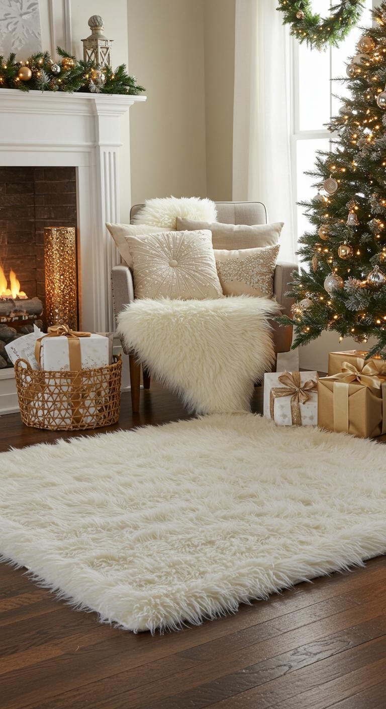 With simple faux fur maintenance and clever rug layering techniques, you can create a dreamy winter retreat that perfectly captures the holiday spirit.