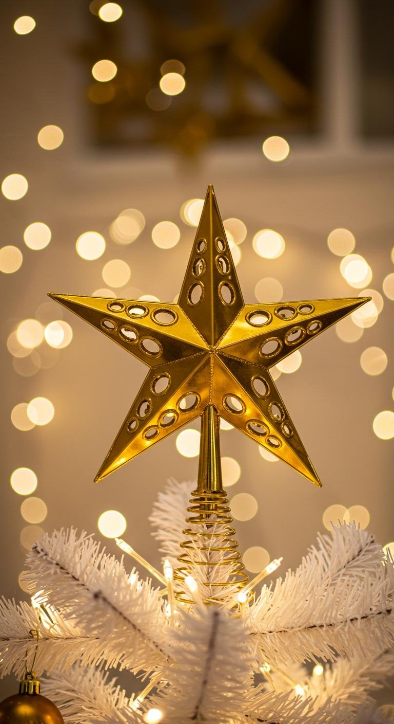 Top your tree with a shimmering gold angel or fairy to capture that festive magic. Glittering wings and a radiant gown really stand out against white and gold branches. Feeling crafty? Making your own angel with a cone base and gold fabric turns the topper into a special project and adds a heartfelt touch that’s all your own.