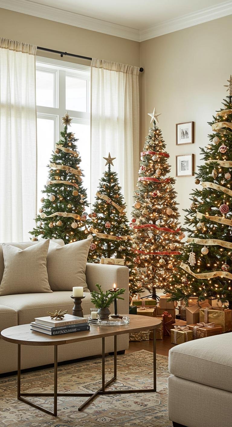 Feeling adventurous? Set up a few smaller trees around your home, each with its own theme. You could have your main neutral tree, then a couple others with soft colors or themed around family memories, travels, or hobbies. It’s such a fun way to stretch your festive spirit throughout your space. Hit up local stores for affordable decorations to keep your wallet happy while creating these unique, personal displays.