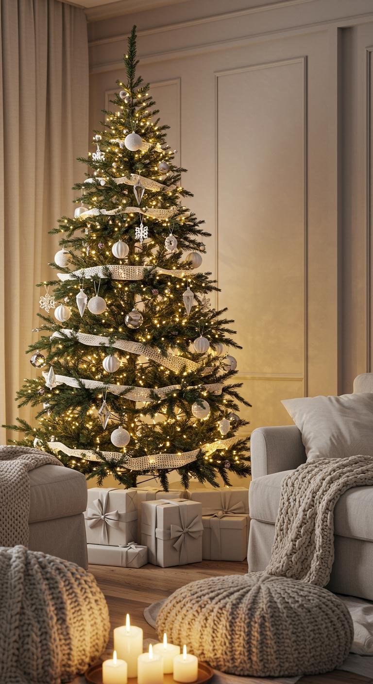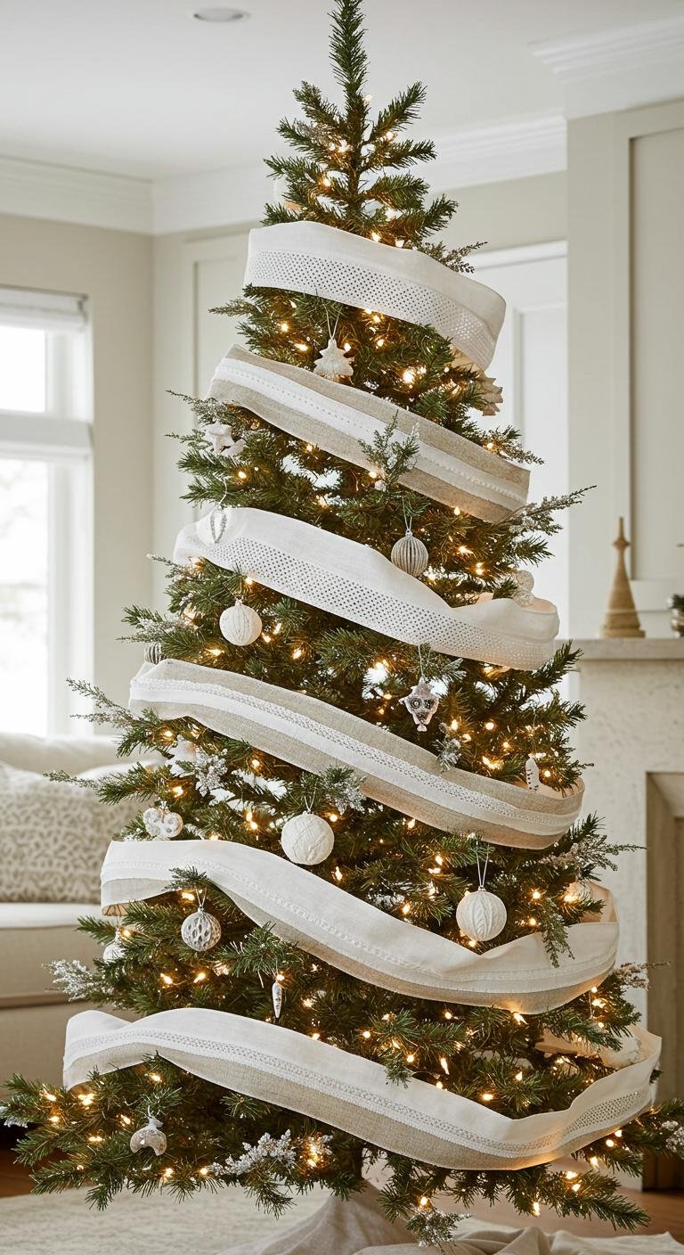 Ribbons are a game-changer for adding layers without making things look busy. I’m talking satin, organza, burlap—mix them up and drape or bow them all over your branches. If you want to save some cash, find old fabric or thrift some ribbon-esque materials and give them new life. These simple additions let your ornaments shine and highlight the beauty of neutral tones by giving your tree texture and movement.