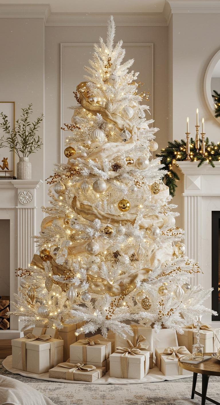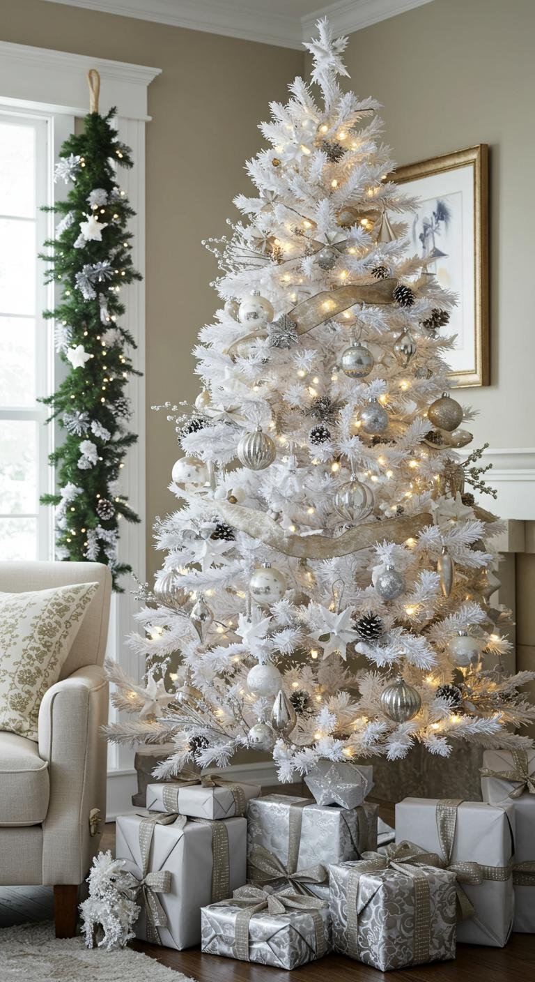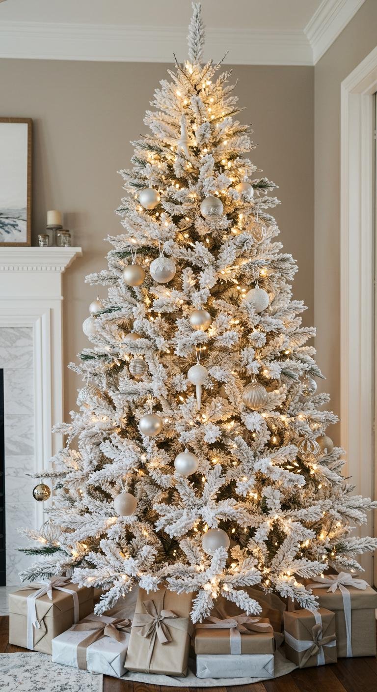 That snowy, winter-wonderland vibe you get from flocked trees is just dreamy—perfect if you want to go all-in on the white theme. The soft white fluff is an amazing backdrop for big statement ornaments or handmade favorites. Try clear or frosted lights to maximize that chilly, magical glow. Tight budget? You can DIY flock your own tree using white spray or cotton batting. It’s a simple trick to instantly step up your neutral decor.