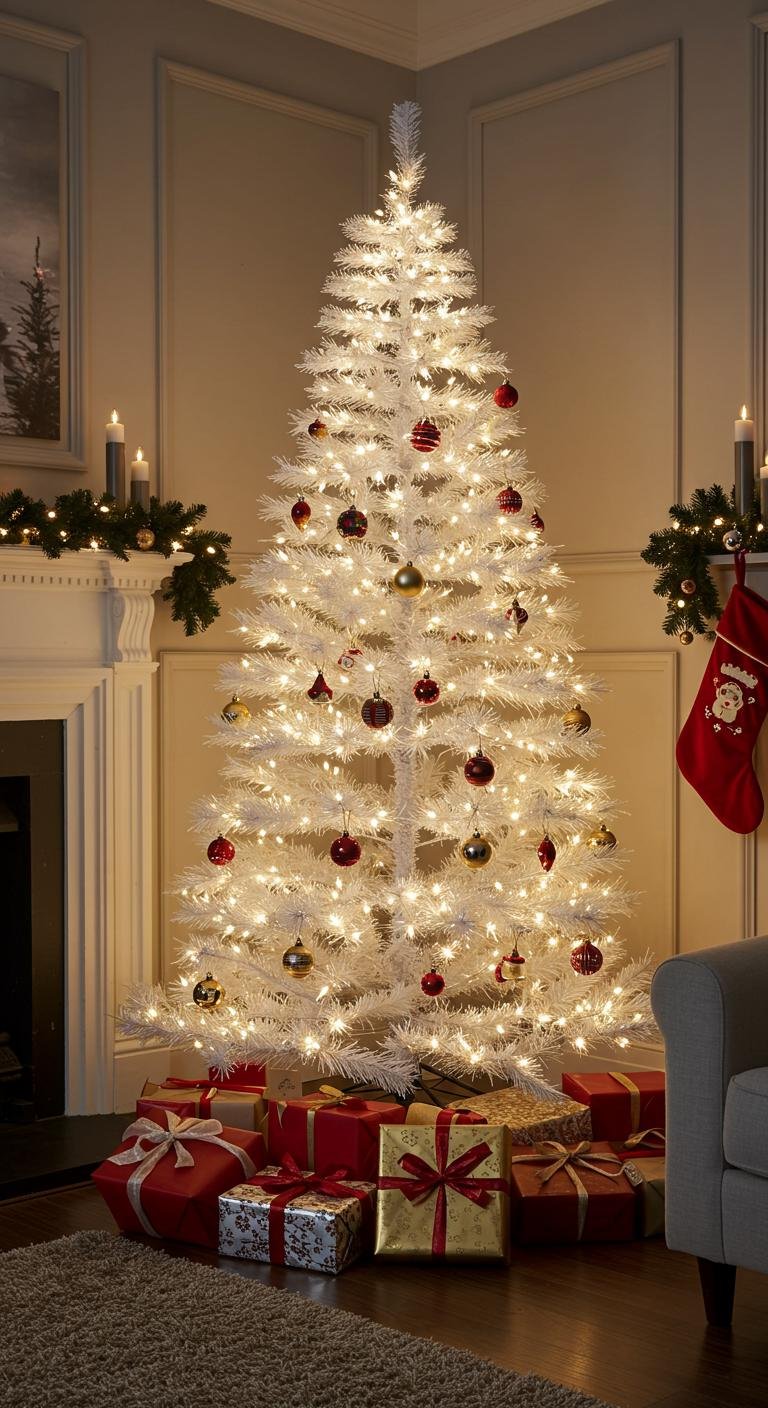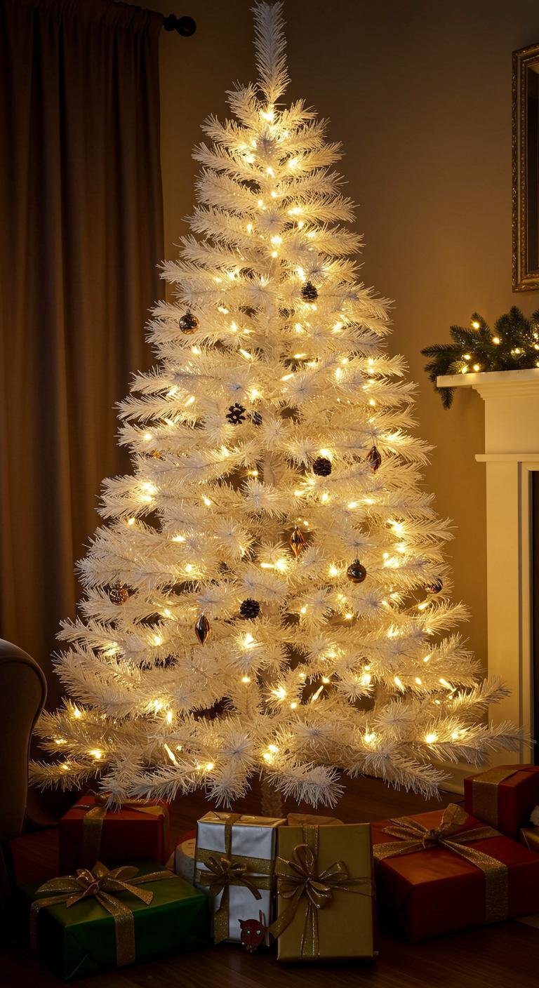 If setting up lights feels like a hassle, a pre-lit white tree might just be your new best friend. They come in tons of styles and budgets, and having those built-in lights means your tree is glowing with minimal effort. Feeling DIY? You can add your own lights to a plain tree for a custom touch. These energy-efficient options light up your space and free you up to focus on the fun stuff.