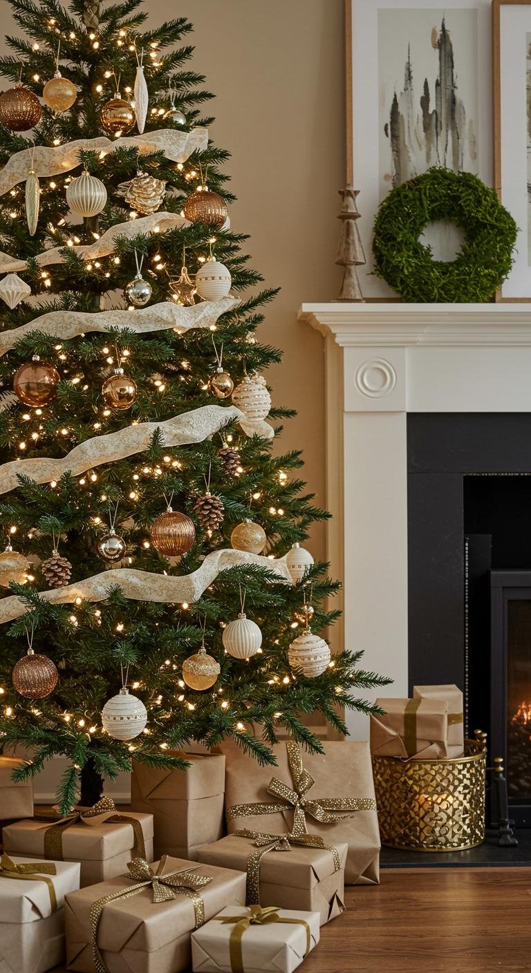 Want your neutral tree to feel a bit luxe without going over the top? Metallic accents like gold and copper can add this cozy elegance, especially when paired with white. You can easily DIY this by spray-painting cheap ornaments or even pinecones you find outside (hello, Pinterest vibes). Wrapping metallic ribbons through your tree makes a huge impact too, giving your whole setup that twinkle of richness and warmth without needing pricey decor.