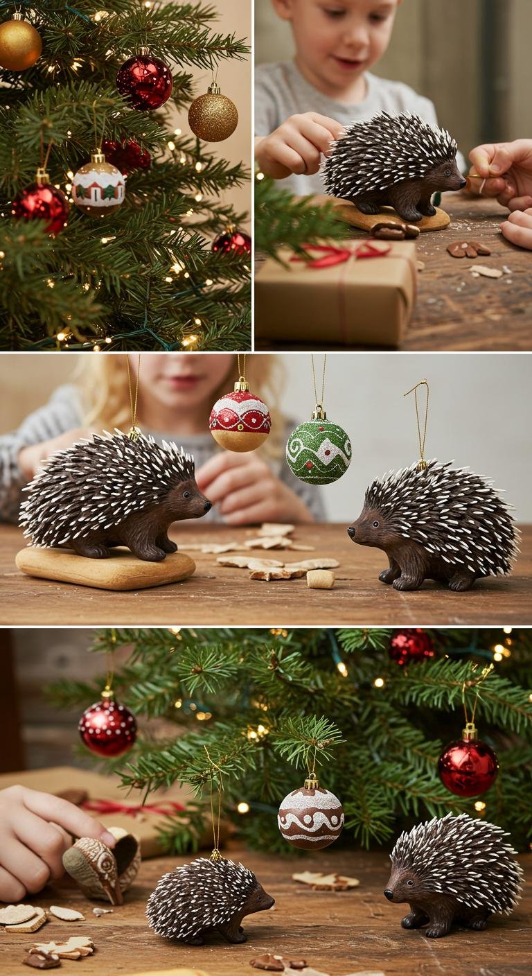 Porcupine ornaments add a whimsical touch to your holiday decor, combining cheerfulness with a hint of woodland charm.