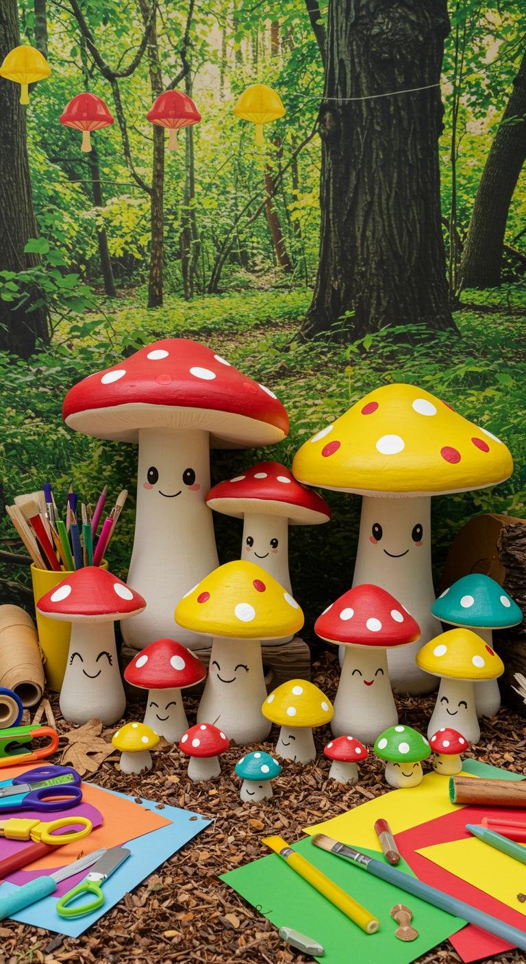 Consider using bright colors and unique patterns for your toadstool decoration ideas.
