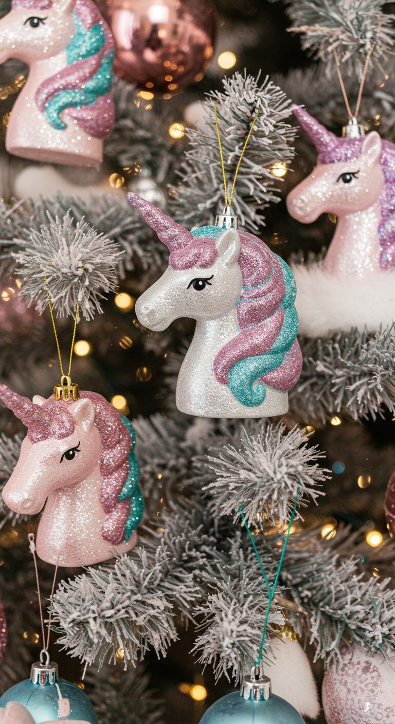 Add in some whimsical unicorn accessories like glittery horns and flowing manes, transforming your tree into a fairytale wonderland that inspires imagination and joy!